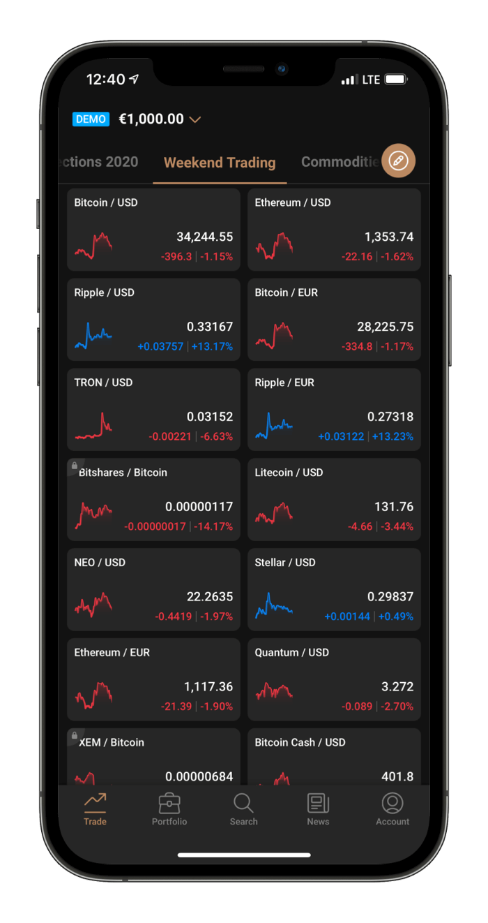The app is built to make options and figures easy to understand, great for beginners and intermediate traders. Demo accounts are simple to set up. 100:1 leverage is available.