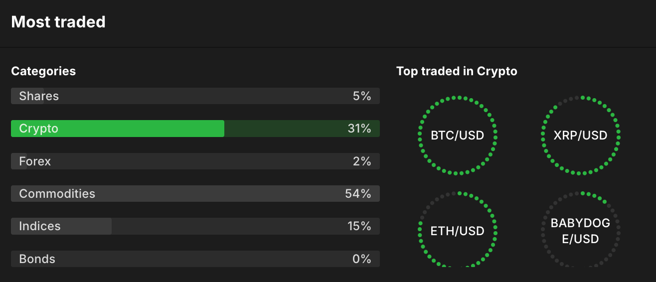 Trade 5,000+ CFDs on stocks, Forex, indices and crypto on a clean, streamlined interface. Everything you need is easy to find — nothing gets in the way.